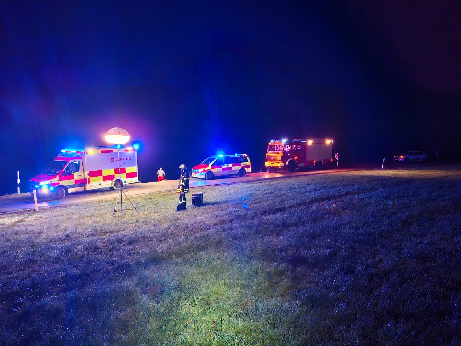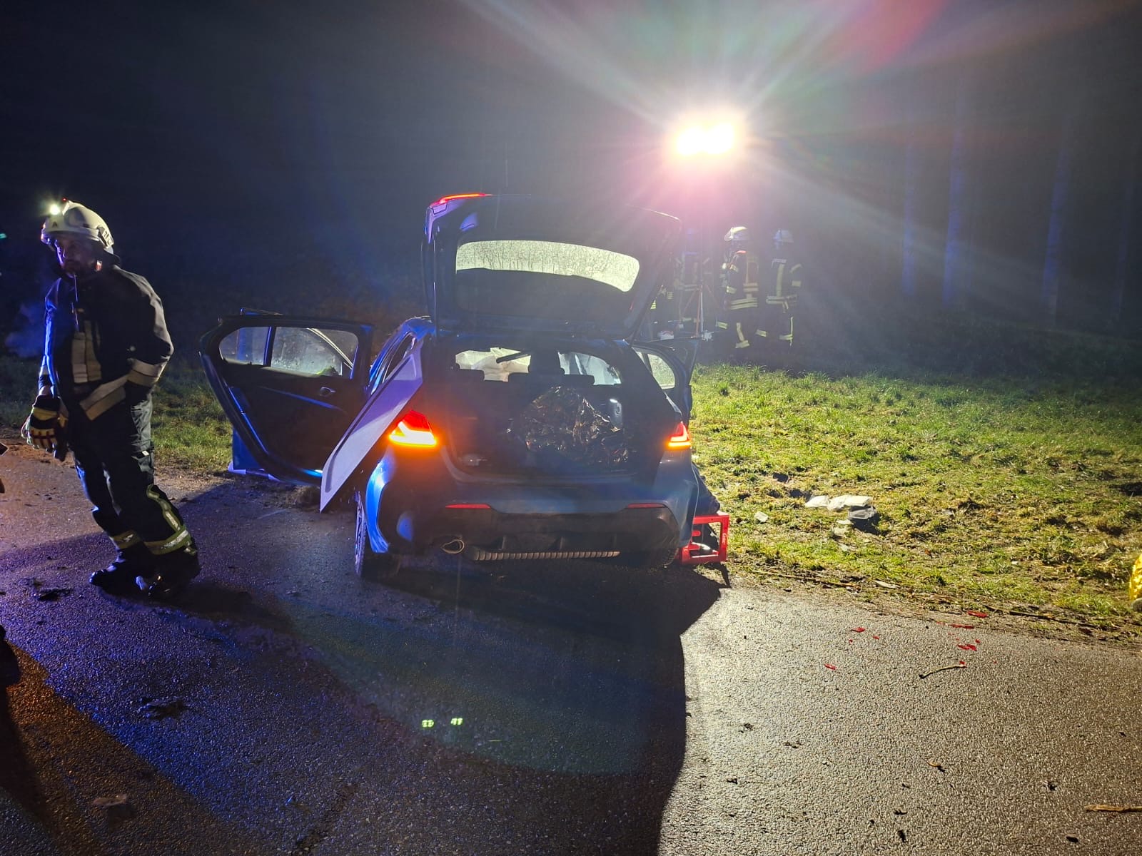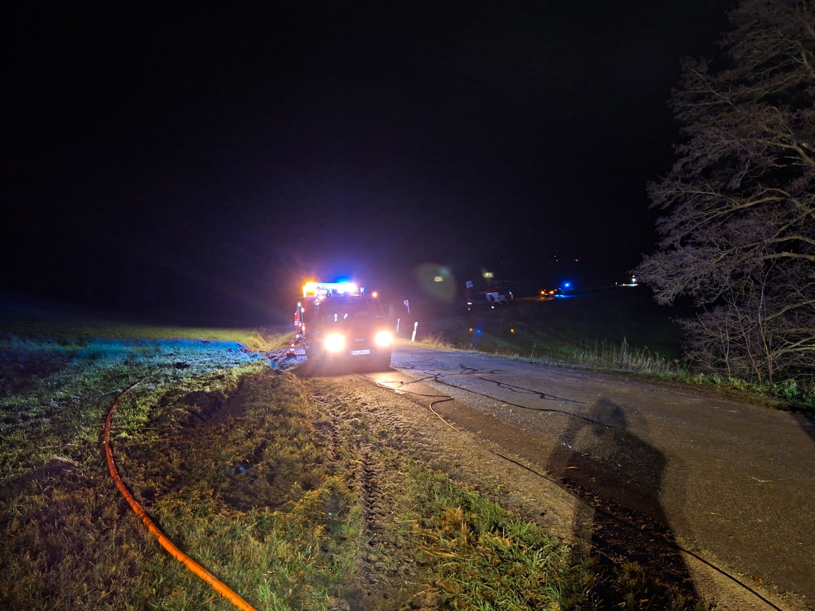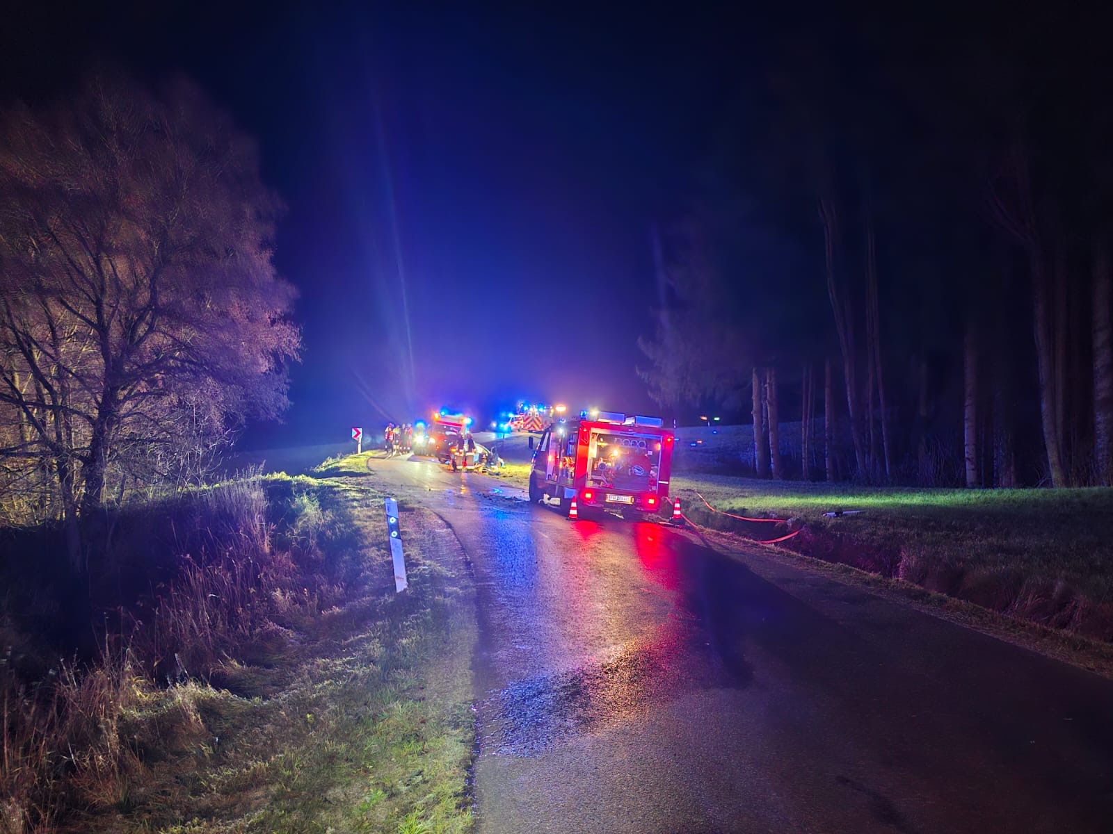 Am 28.11.2025 ertönte mitten in der Nacht gegen 23:17Uhr der Alarm, bei dem wir zu einem Pkw-Unfall mit 3 verletzten Personen zur Triefinger Straße bei Gurnöbach gerufen wurden.
